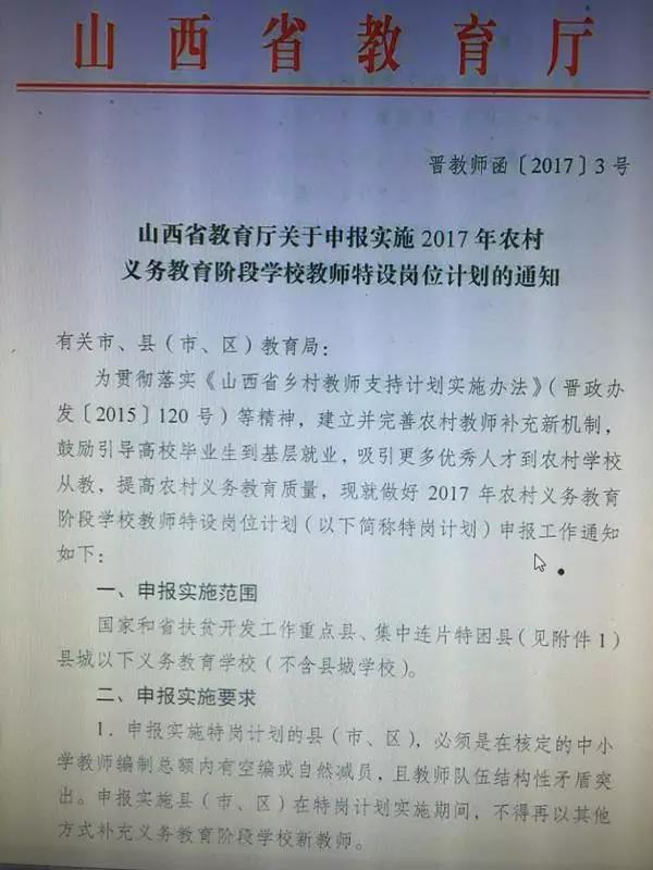 山西省2017年58個縣將招聘特崗教師